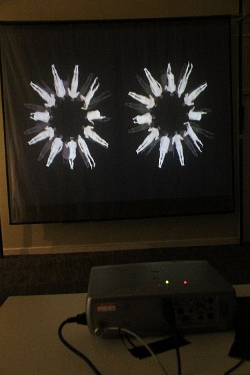 Lacuna. 2012. Video projection work, 8min 56sec Video, Media player and HD Projector onto black voile screen 2m x 3m floating 3 inches from a white painted wall or play on large 50 inch monitor.