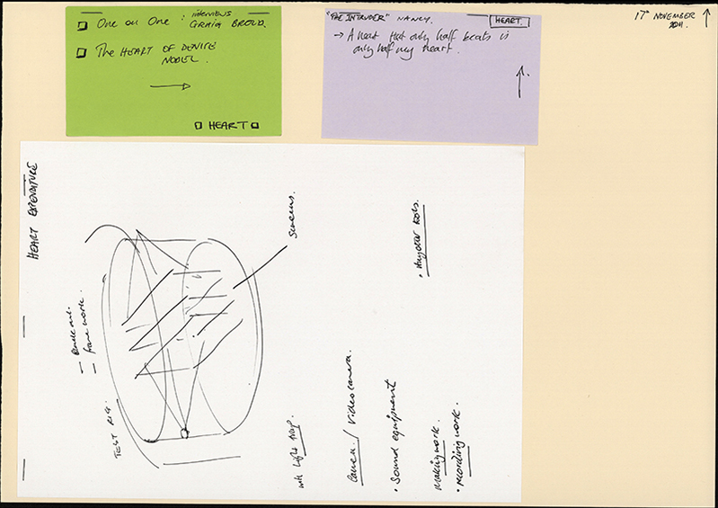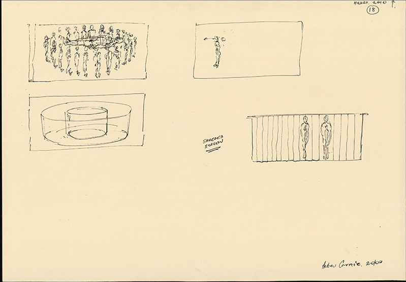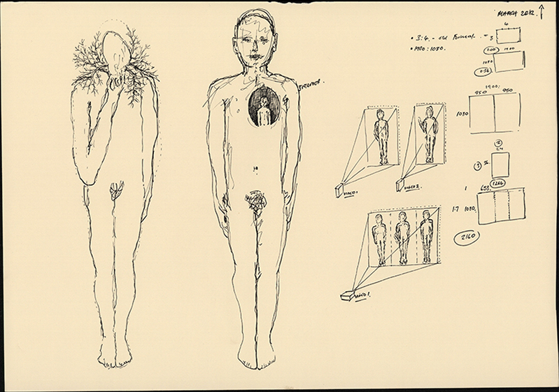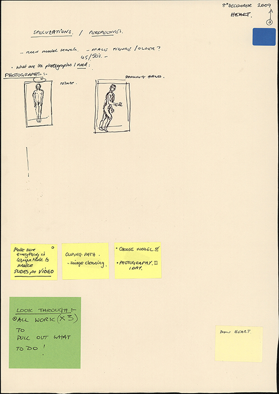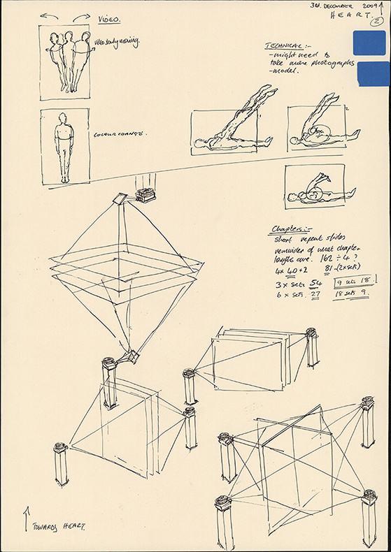 Preparatory drawings for the Hybrid Bodies Project. A lot of the drawings were completed while listening to the transplant patients talk about their experiences post transplant: these conversations were video taped and examined and analysed in detail by the research team in Toronto, Canada.